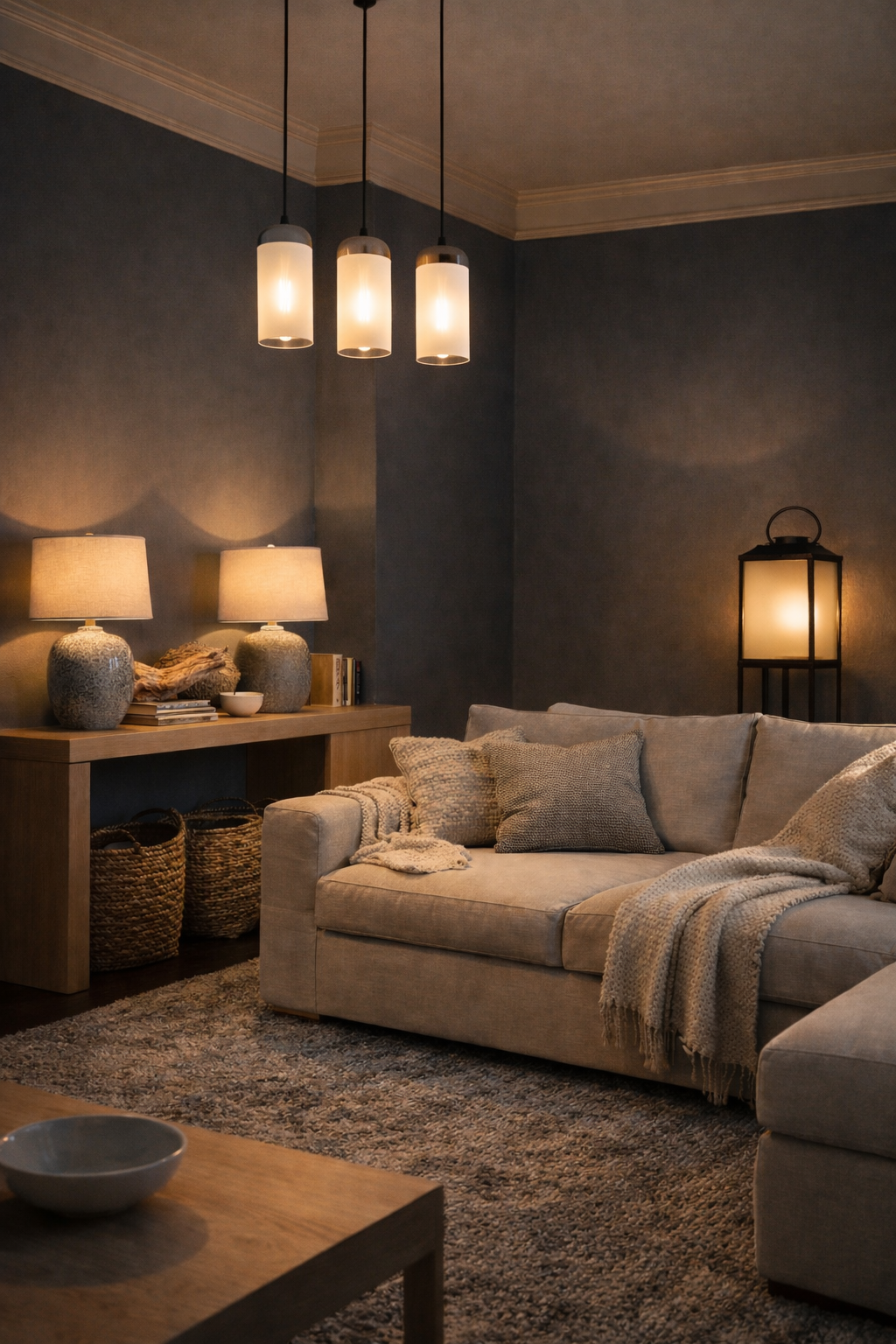 8. Coastal After-Dark with Rope Pendants and Salted Neutrals