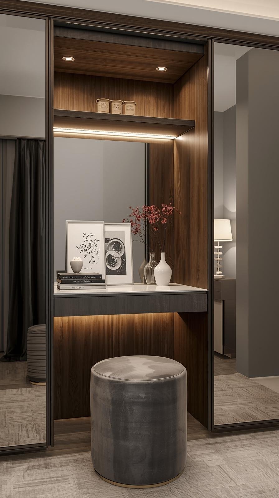 The ultimate small-space hack. Turn part of your wardrobe into a vanity that disappears when you’re done.