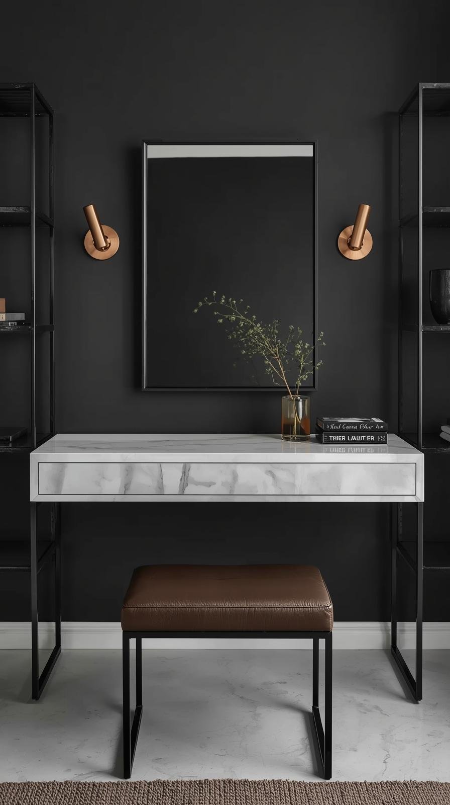 4. Glam-Industrial Beauty Station with Metal and Marble