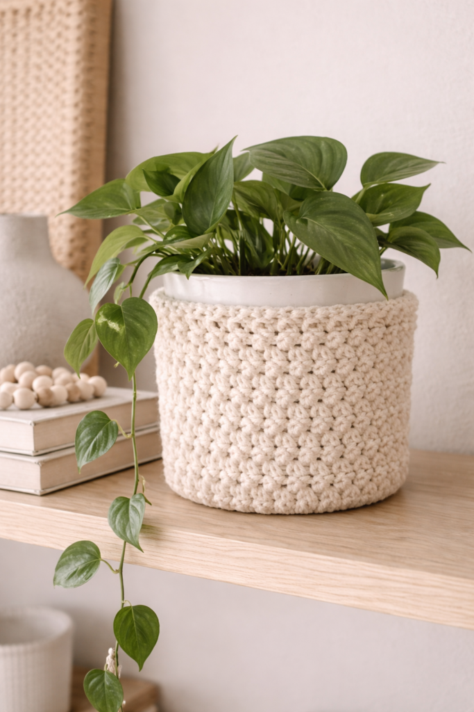 10. Crochet Plant Pot Cover (Instant Cozy Upgrade)