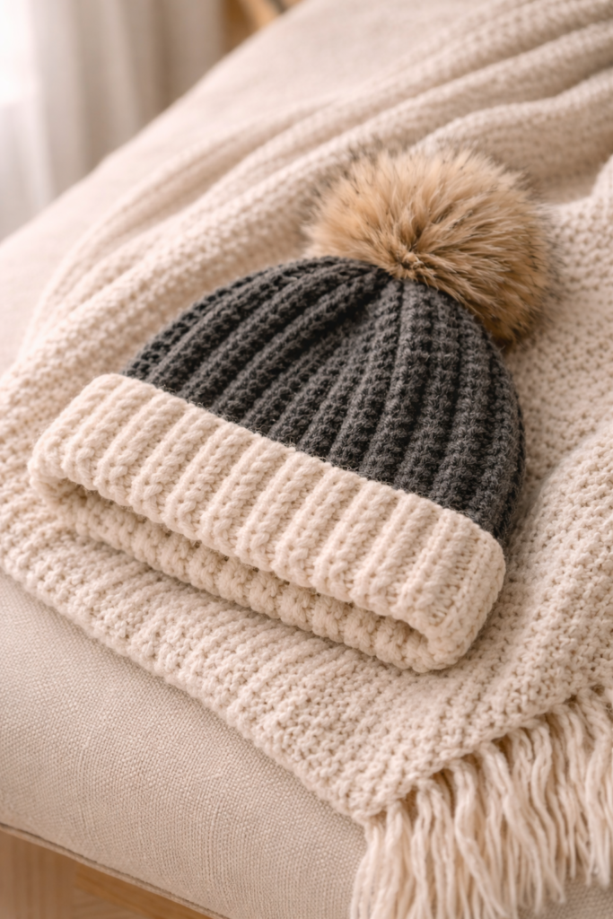 If you’ve been searching for crochet ideas for beginners that feel like a real accomplishment, this is it. A ribbed beanie looks structured and polished, but it’s built from simple stitches. The ribbing comes from working in the back loop only, which creates that stretchy knit-like texture. Neutral tones like cream or charcoal feel modern. Rust, olive, or mustard feel cozy and seasonal.