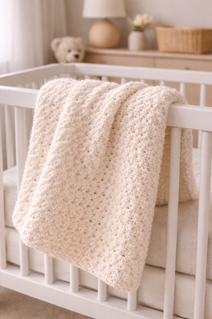 If you’ve been nervous about bigger projects, this is your safe entry point. A simple baby blanket is one of the best crochet ideas for beginners because it’s repetitive and forgiving. No complicated shaping. No intense stitch changes. Just steady rows that build muscle memory. Soft acrylic feels lightweight and washable. Chenille yarn feels plush and cozy. Neutrals feel modern. Pastels feel sweet and classic.
