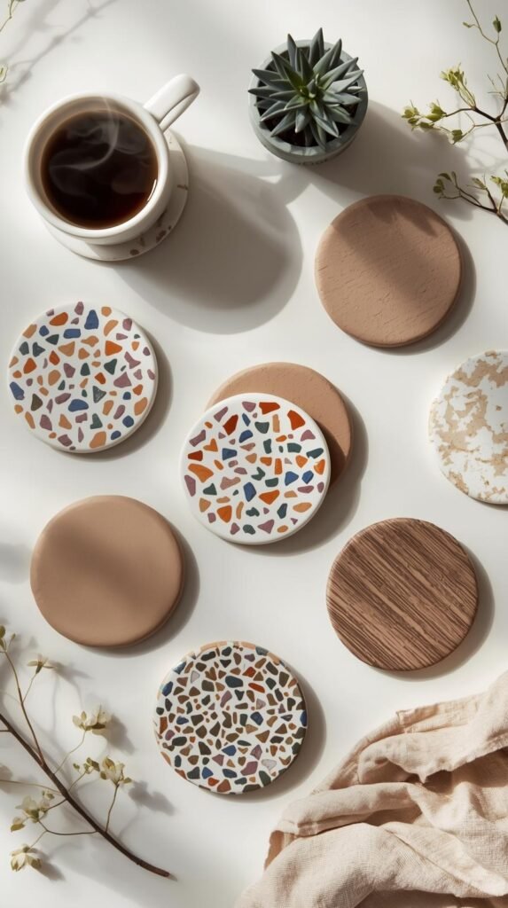 These terrazzo-inspired coasters look high-end but are surprisingly simple to make. The colorful clay chips mixed into a white base mimic real terrazzo and instantly elevate the look of any coffee table. This is one of the best air dry clay ideas to sell because the final product feels both modern and handcrafted. You can customize the palette to pastels, neutrals, or bold tones depending on your aesthetic.