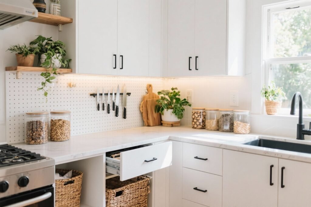 Maximize a small kitchen with modern storage solutions that feel elevated, organized, and easy to live with. Perfect for renters and homeowners.