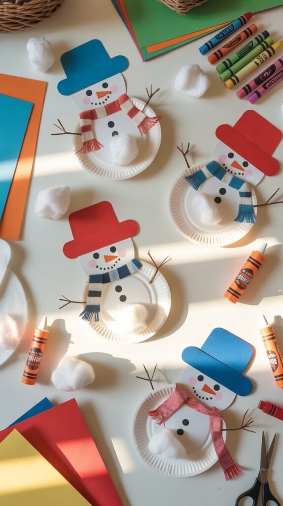 1. Paper Plate Snowmen