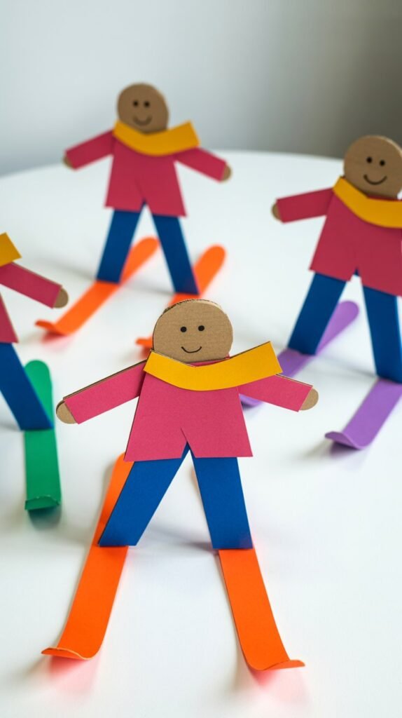 - Add poles: Cut thin paper strips for ski poles and attach to the hands.