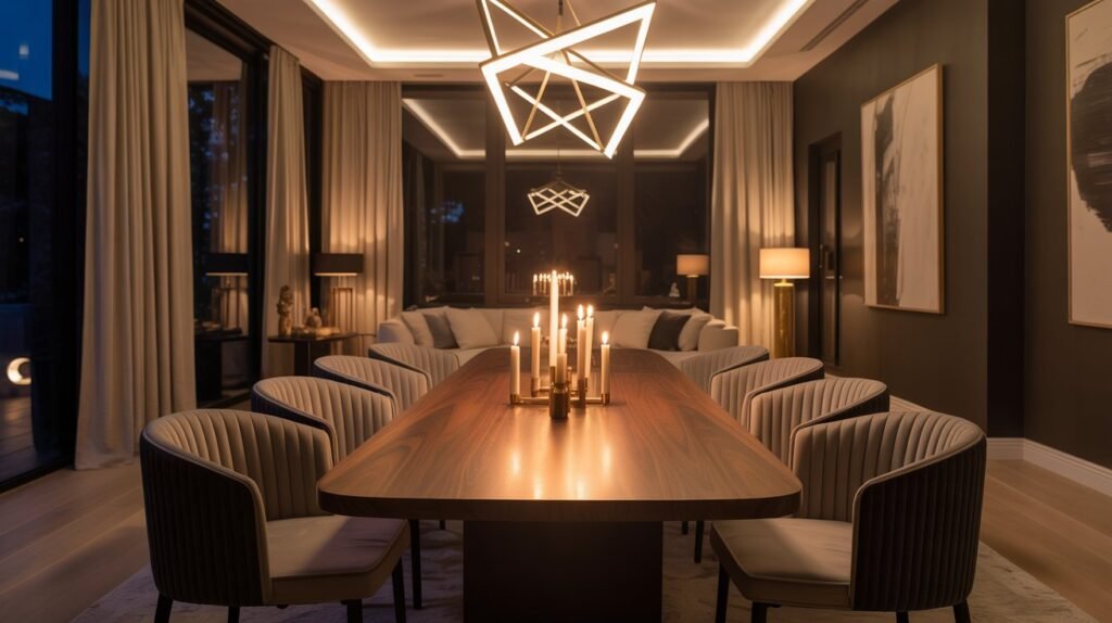 - Ceiling height check: Big fixtures need room to breathe—aim for about two-thirds the table width for chandelier length.