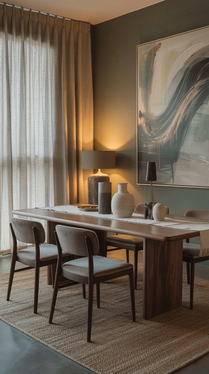 Rugs in dining rooms? Yes—if you choose wisely. A low-pile, easy-clean rug frames the table, absorbs sound, and instantly warms up the vibe.