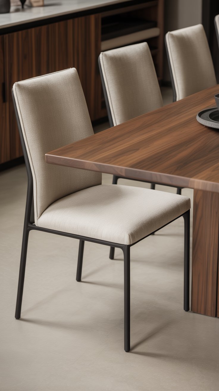 The easiest modern update? Mix textures and finishes. Upholstered chairs with sleek black metal legs feel current, while bouclé or performance velvet adds *chef’s kiss* comfort.