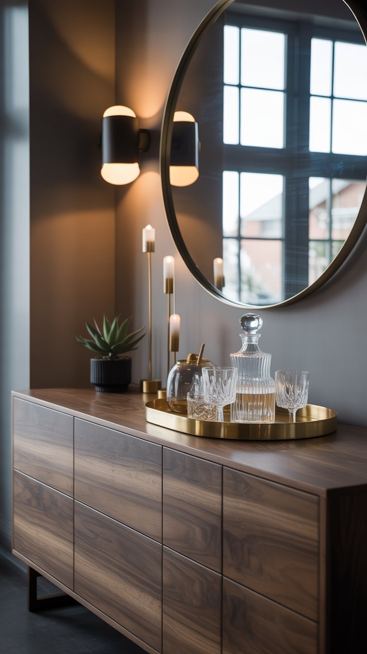 - Art or a mirror above to anchor the vignette. Sconce lighting = instant sophistication.