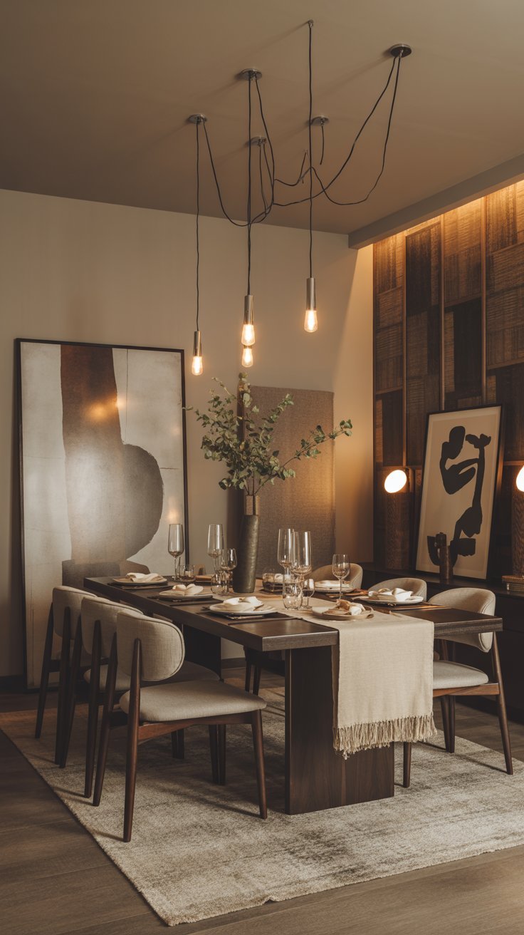 No one wants to eat under interrogation lighting. Modern chic is all about layers, ambient, task, and accent—so the room can shift from brunch to late-night dessert vibes.