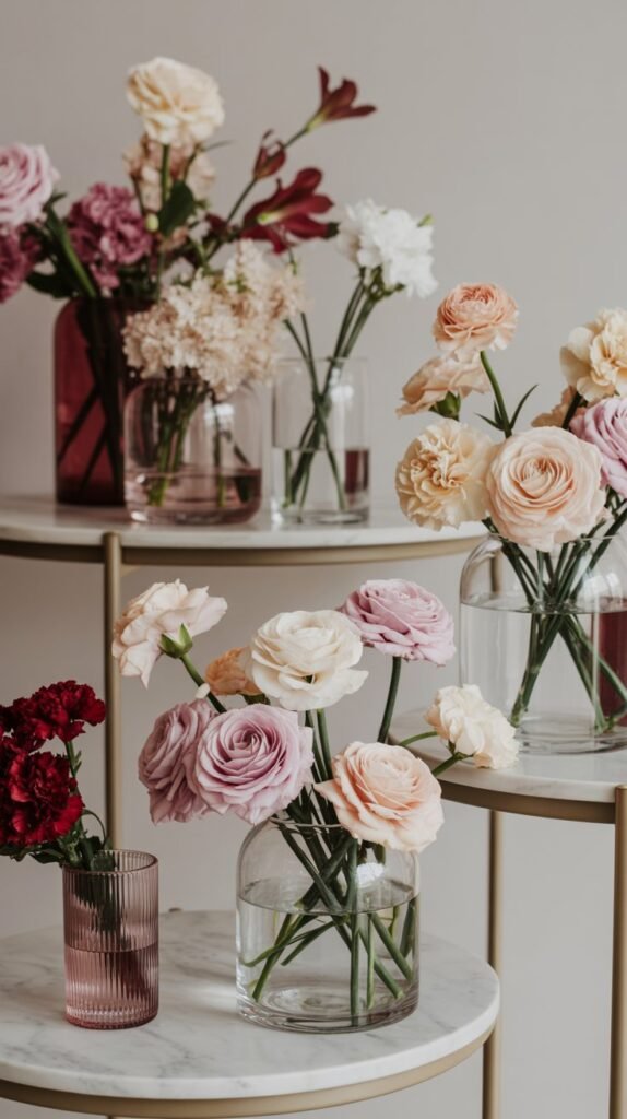 Florals are the heartbeat of Valentine’s decor, but you don’t need a florist-level budget. Mix fresh and faux for volume without cost.